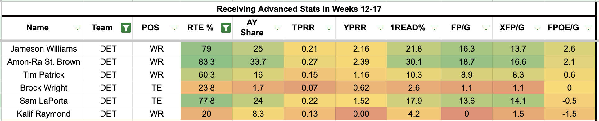 Whether we're playing a playoff contest or DFS, we'll want a piece of the Lions' offense, especially considering St. Brown and Williams have been reliable options.