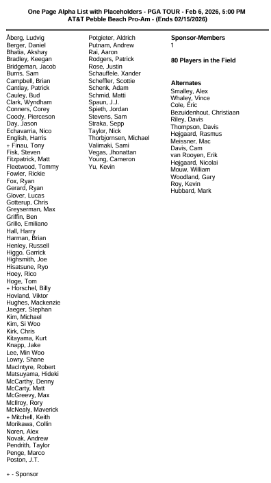 The PGA TOUR travels to Pebble Beach, California, this week for the AT&T Pebble Beach Pro Am, the first Signature Event of the season. With Signature Event status comes an elevated prize pool and 700 FedEx Cup points up for grabs, but the field is limited to just 80 players, and there will be no cut. Amateurs will once again be paired with professionals for the opening two rounds, which will be played across Pebble Beach Golf Links and Spyglass Hill. Beginning on the weekend, all 80 professionals will compete solely at Pebble Beach.