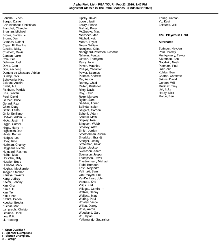 | Cognizant Classic in The Palm Beaches |