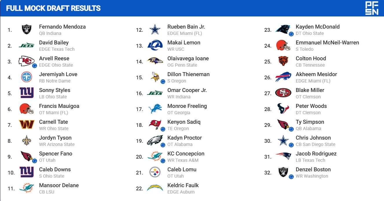That’s why I put together this first-round mock draft—to cut through the noise and spotlight exactly where the top prospects are headed. I’m not just guessing; I’m matching talent to team needs, scheme fits, and those sneaky situations that could turn good players into stars. Whether it’s Fernando Mendoza or Jeremiyah Love landing in a perfect offensive system or a wide receiver falling into a spot with an established vet to learn from, every pick carries real weight. Stick with me as I break down each selection and explain why certain names are about to become household favorites.