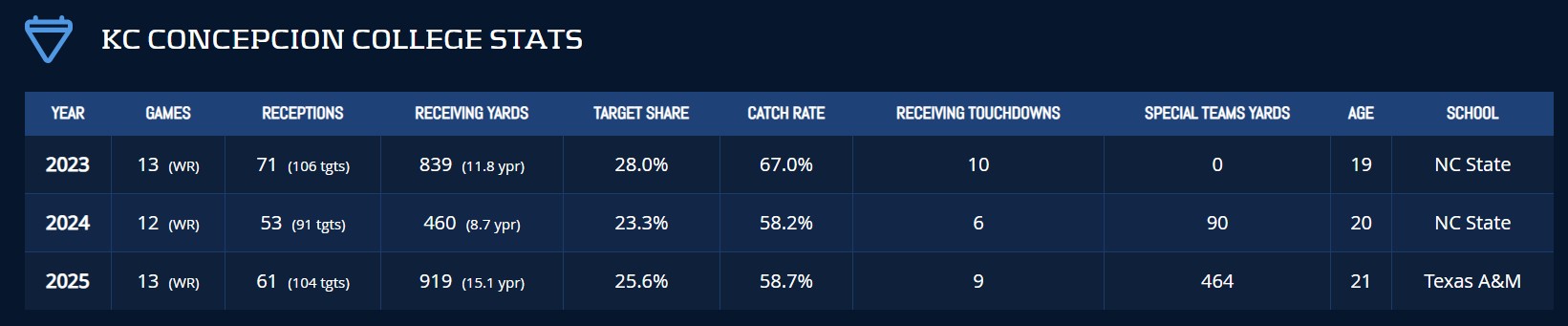 For fantasy football, this could develop into one of the more exciting landing spots for a rookie wide receiver in the 2026 class. KC Concepcion instantly profiles as a Flex play with legitimate WR3 spike potential in redraft leagues thanks to the projected volume and big-play opportunities in Miami. Dynasty managers will love the big-play potential of a speedy playmaker in an evolving fantasy-friendly offense.