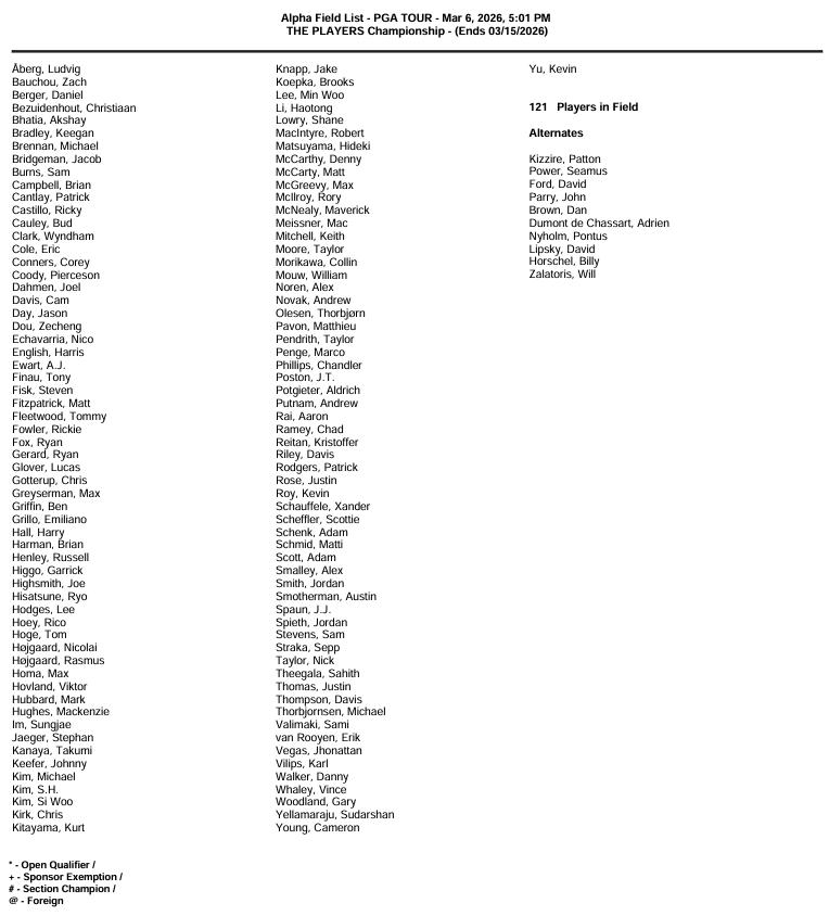 THE PLAYERS Championship features a 123-player field with a cut after 36 holes. It is one of the strongest fields we will see all year, highlighted by the top-10 players in the Official World Golf Ranking all teeing it up.