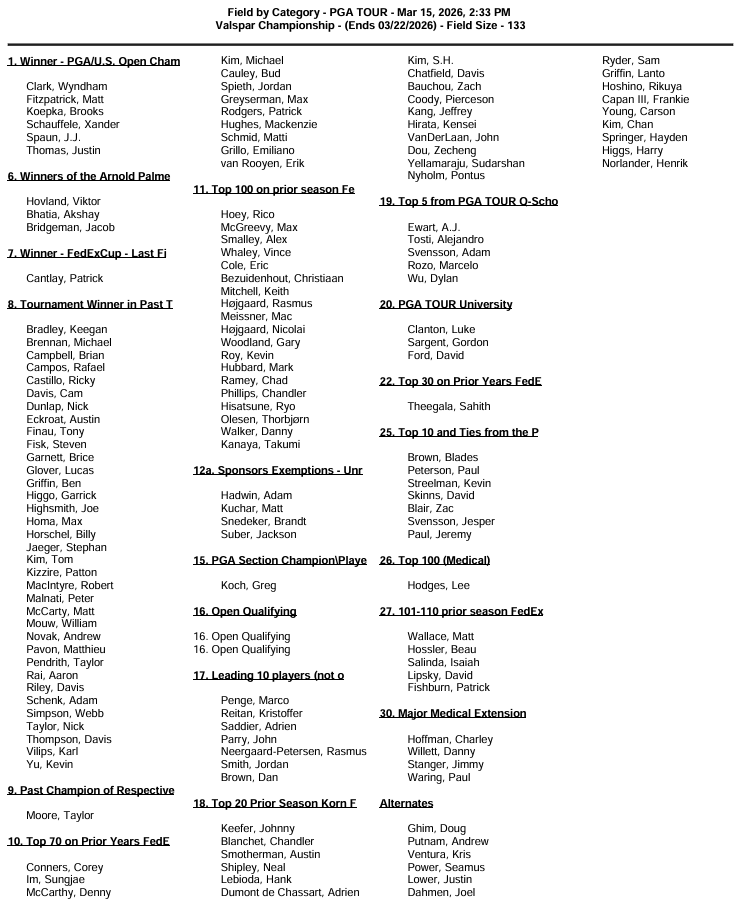 The Valspar Championship features a 135-player field with a cut after 36 holes. Following THE PLAYERS Championship last week, several of the biggest names on TOUR have chosen to skip this event. Despite that, the field still includes plenty of talent near the top of the odds board.