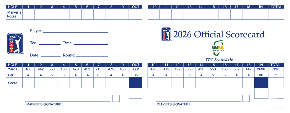 | TPC Scottsdale (Stadium Course) | TPC Scottsdale (Stadium Course) | TPC Scottsdale (Stadium Course) | TPC Scottsdale (Stadium Course) | TPC Scottsdale (Stadium Course) | TPC Scottsdale (Stadium Course) | TPC Scottsdale (Stadium Course) | TPC Scottsdale (Stadium Course) | TPC Scottsdale (Stadium Course) |
