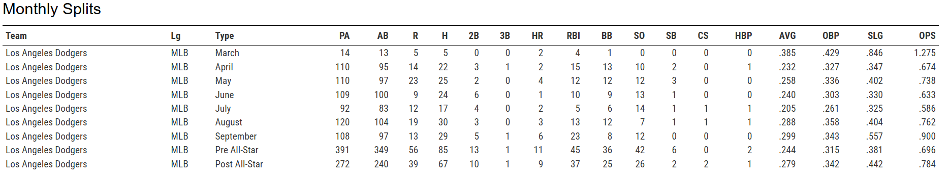 Betts started the season with an illness in Japan that cost him games and 20 pounds. His early struggles last year began with a .232 batting average in April, which continued through July. Betts then hit .288 and .299 in August and September, respectively. See the box below.