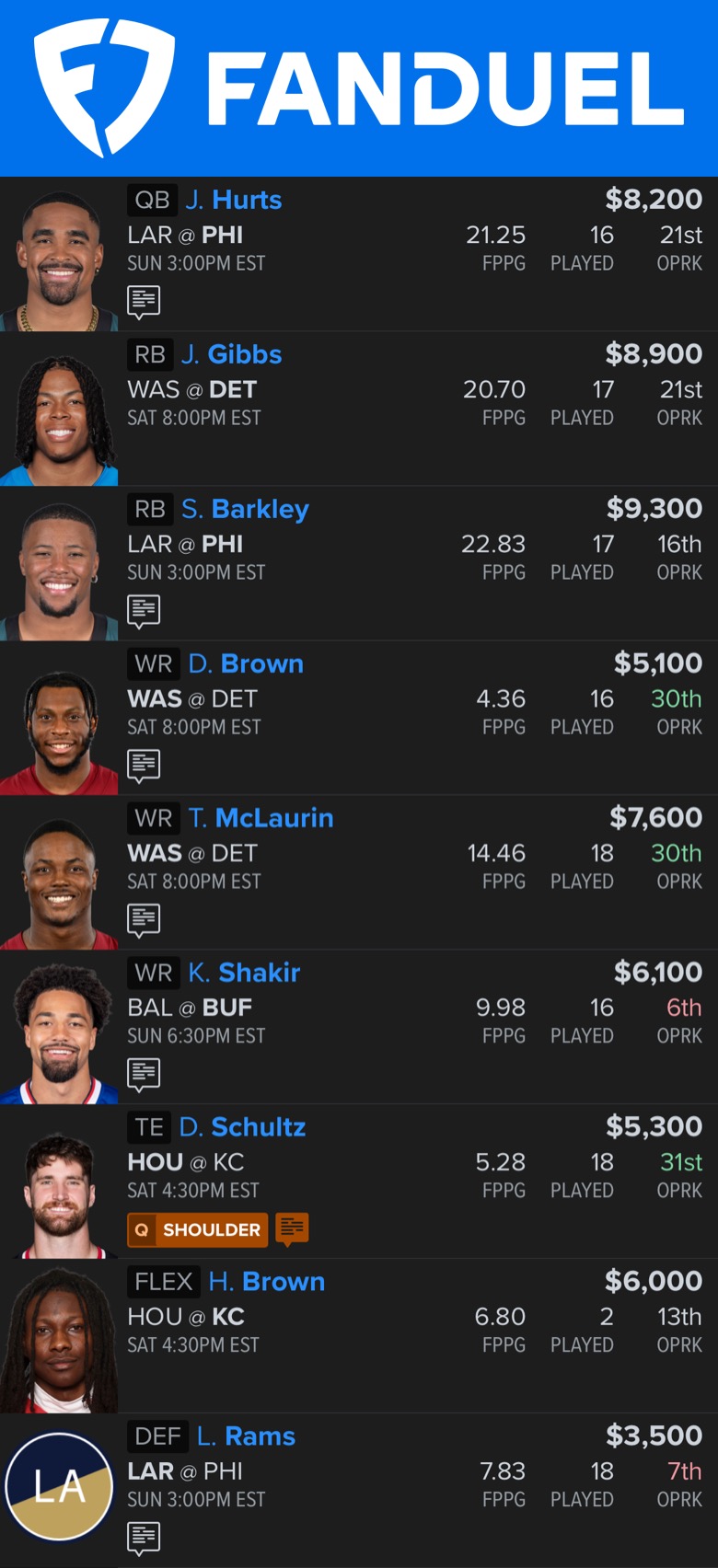 FanDuel Lineup