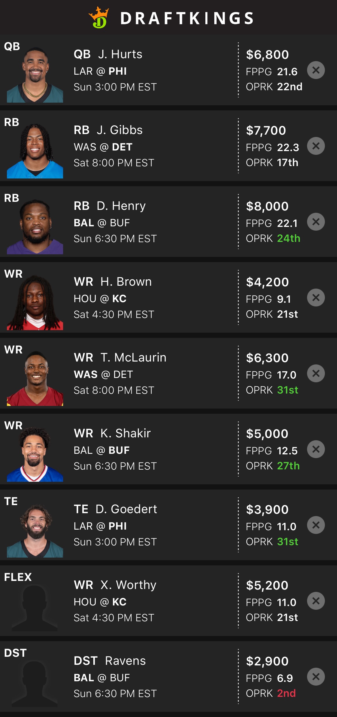 DraftKings Lineup