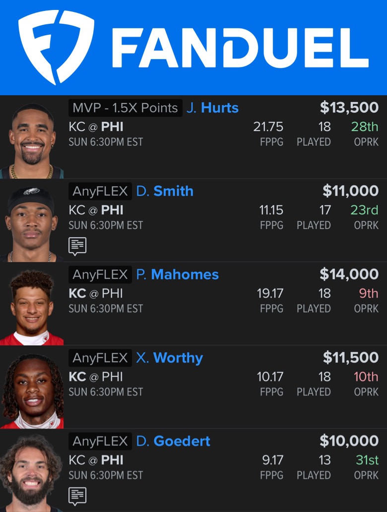 Core Plays: Saquon Barkley, Jalen Hurts, Dallas Goedert, Patrick Mahomes, Xavier Worthy, DeVonta Smith