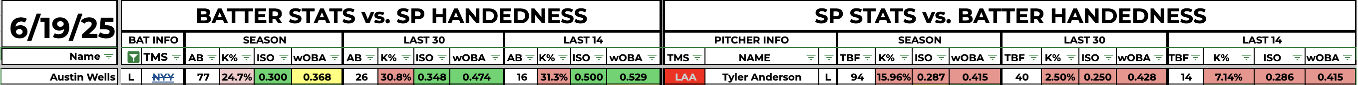 Austin Wells is my favorite home run bet of the day. He is in an elite spot even with the left-on-left matchup against Tyler Anderson. It will be 95 degrees at first pitch with a 10+ mph wind blowing out to left field. We have another spot with elite hitting conditions.