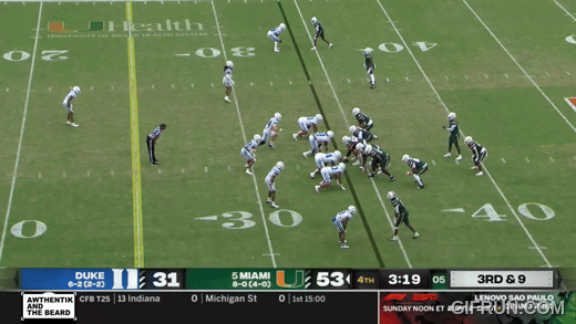 Another impressive aspect of Ward's game is how his Miami coaches gave him the freedom to check protections and route concepts at the line of scrimmage. Against Virginia Tech, Ward made checks before the snap on several plays, including a few on the game-winning drive.