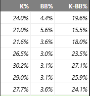 K-BB% is widely considered one of the best single metrics to measure pitching performance, and Paez has been outstanding at every MiLB stop: