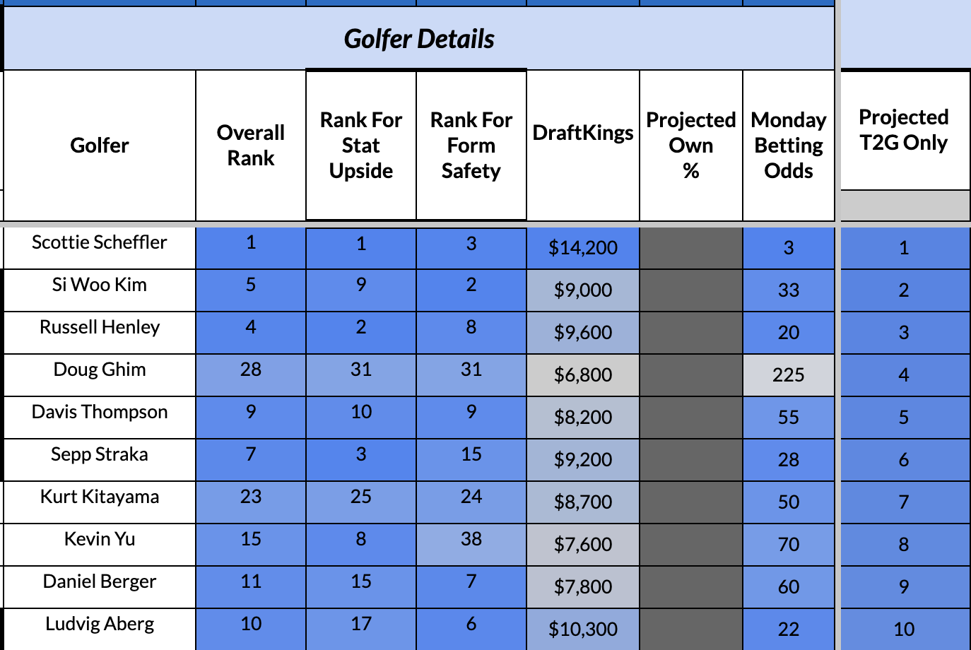 *** Gamers are going to be left with a real decision of what to do with Scottie Scheffler this week. You aren't going to get any pushback from me if you want to play him. I actually think he pairs well with a lot of the $6,000 options. Names like Ben Griffin, Sepp Straka, Harry Hall and Si Woo Kim are nice looks if you decide to try and beat the inevitable.
