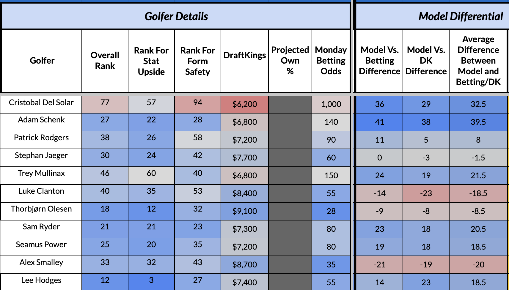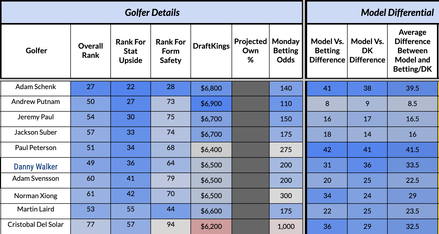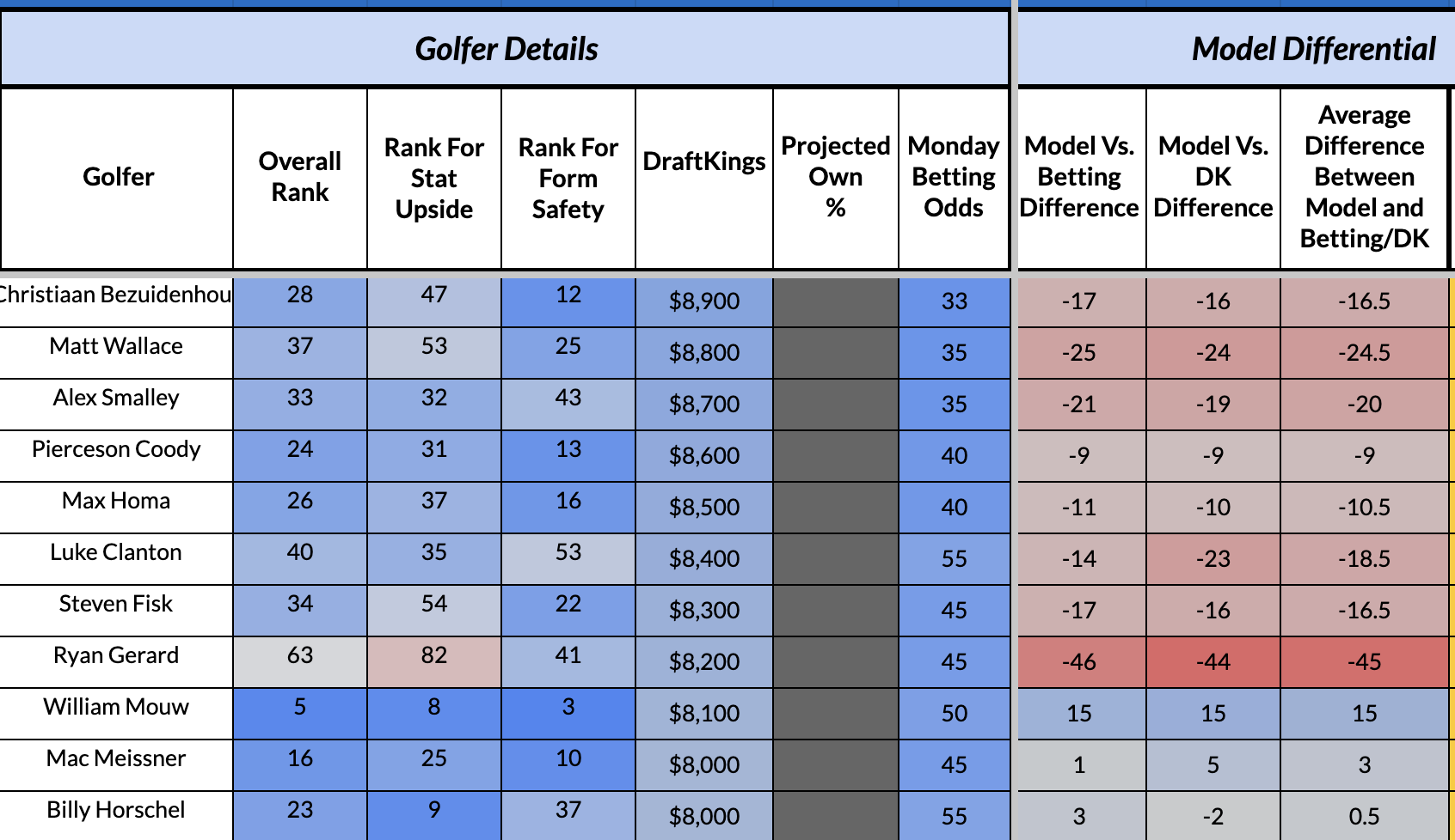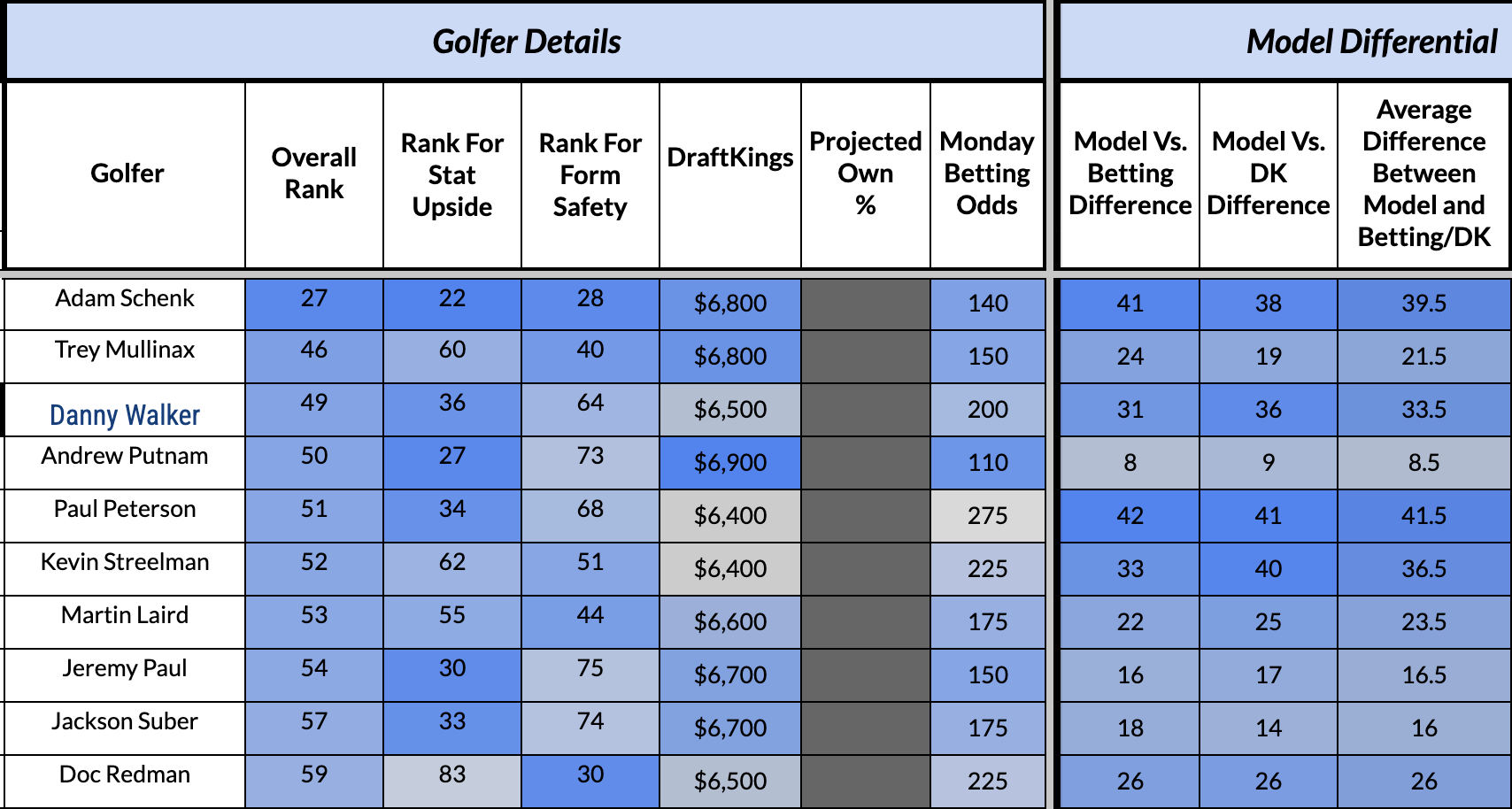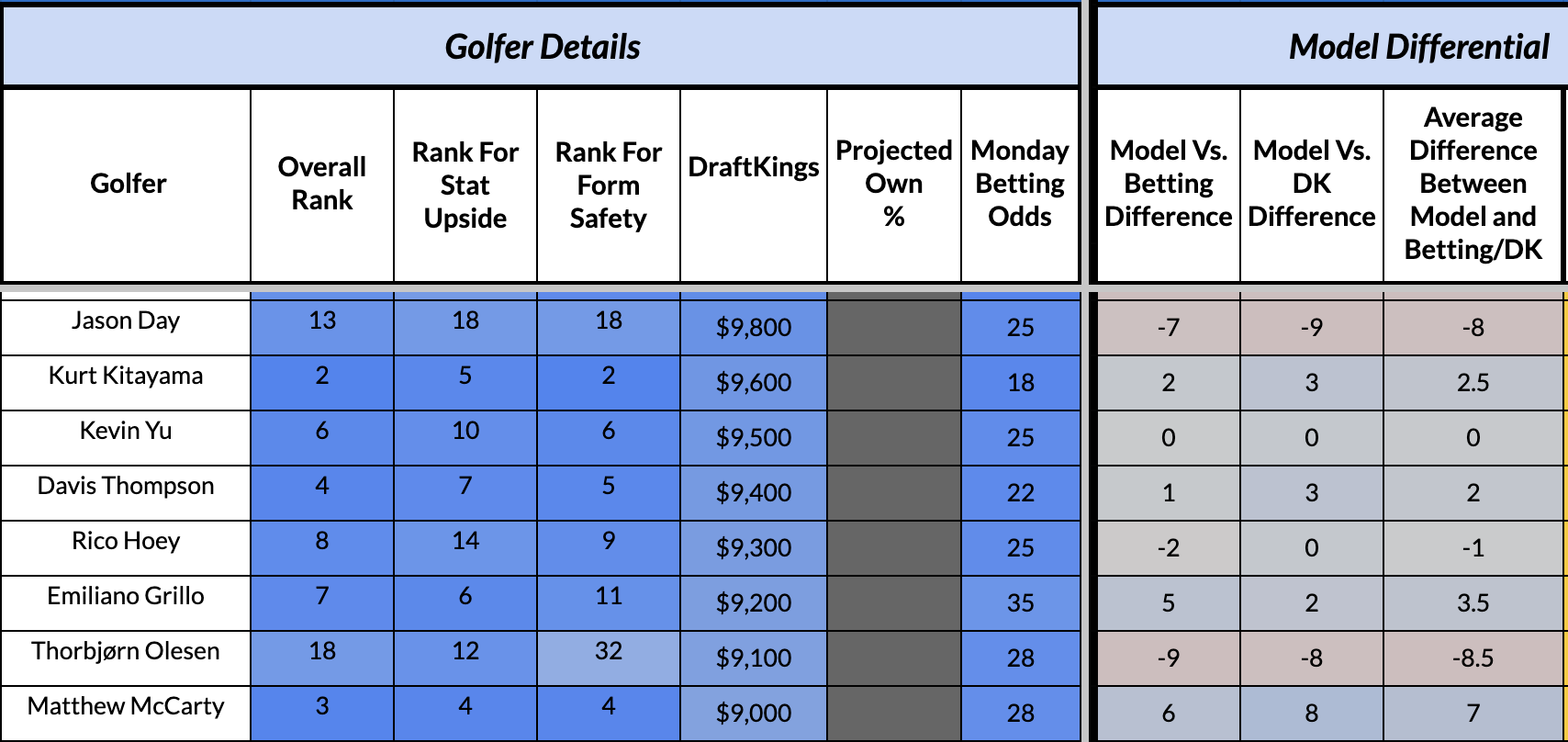 PGA DFS Rankings Wizard - Spencer's Model (And More)