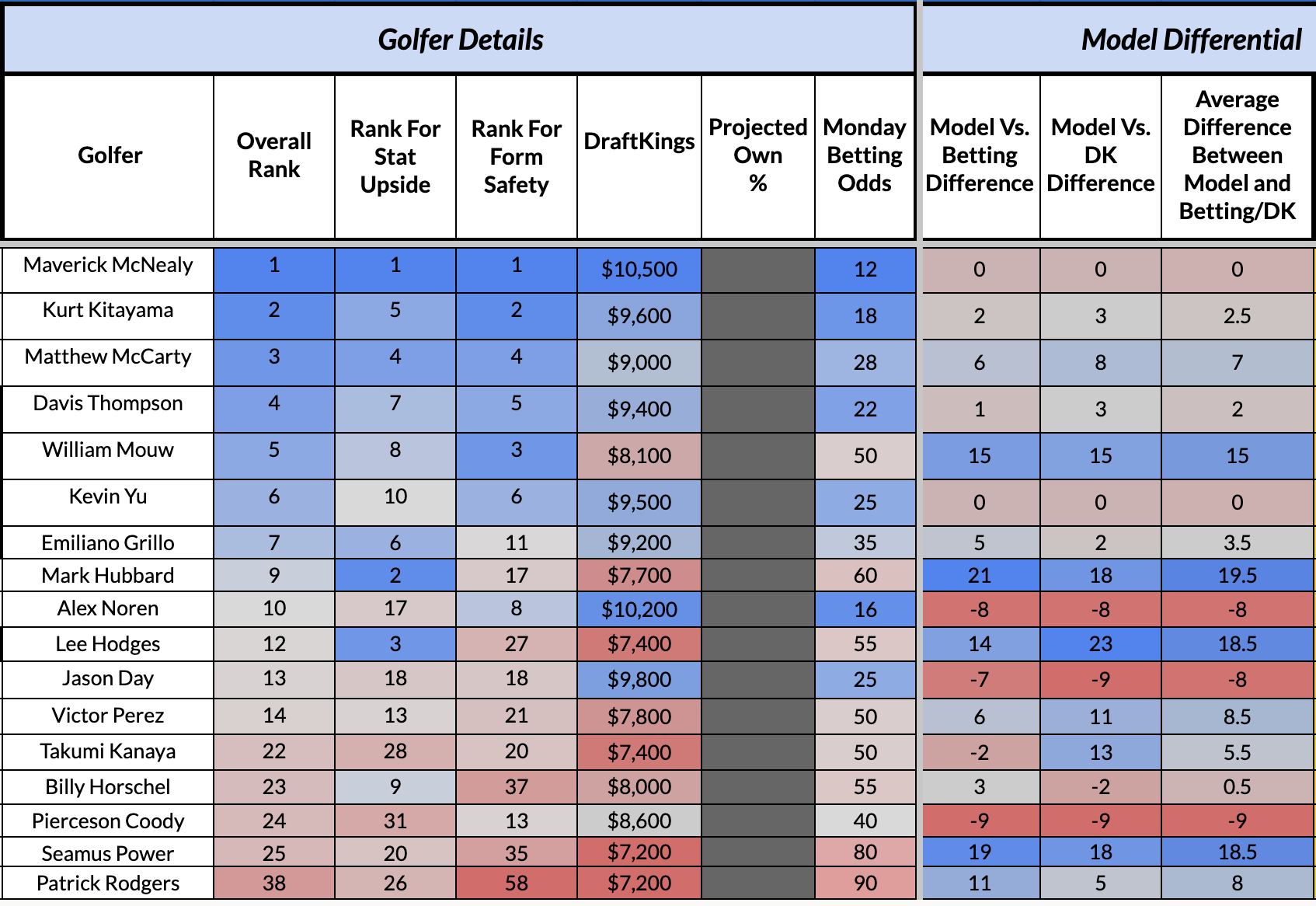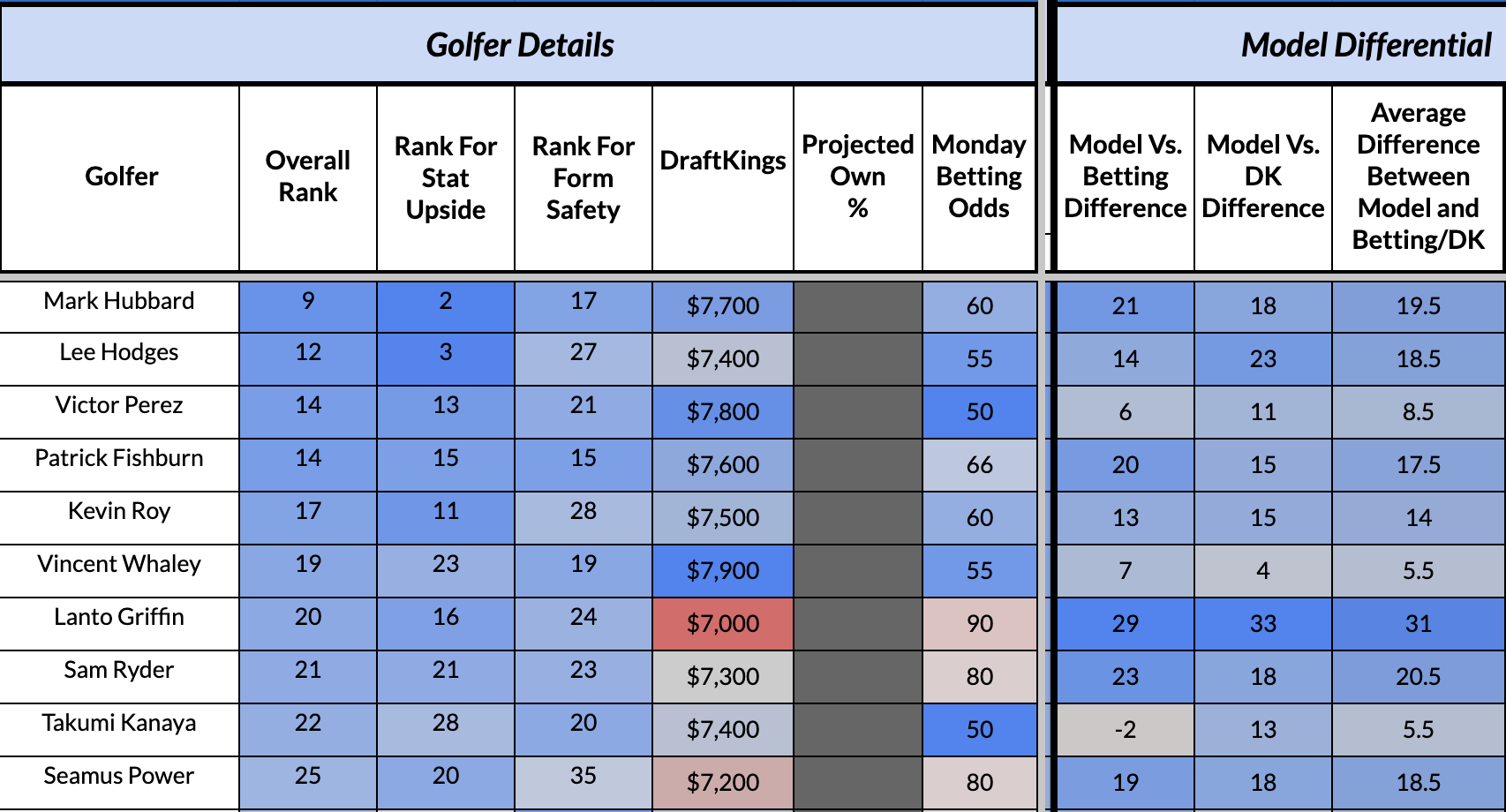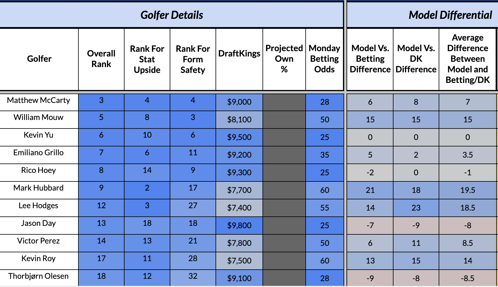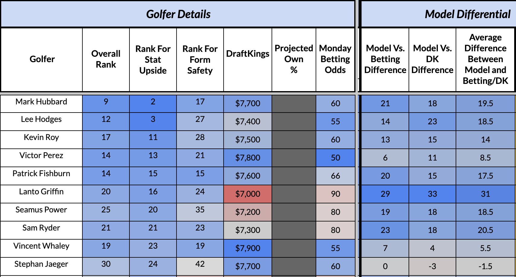 PGA DFS Rankings Wizard - Spencer's Model (And More)