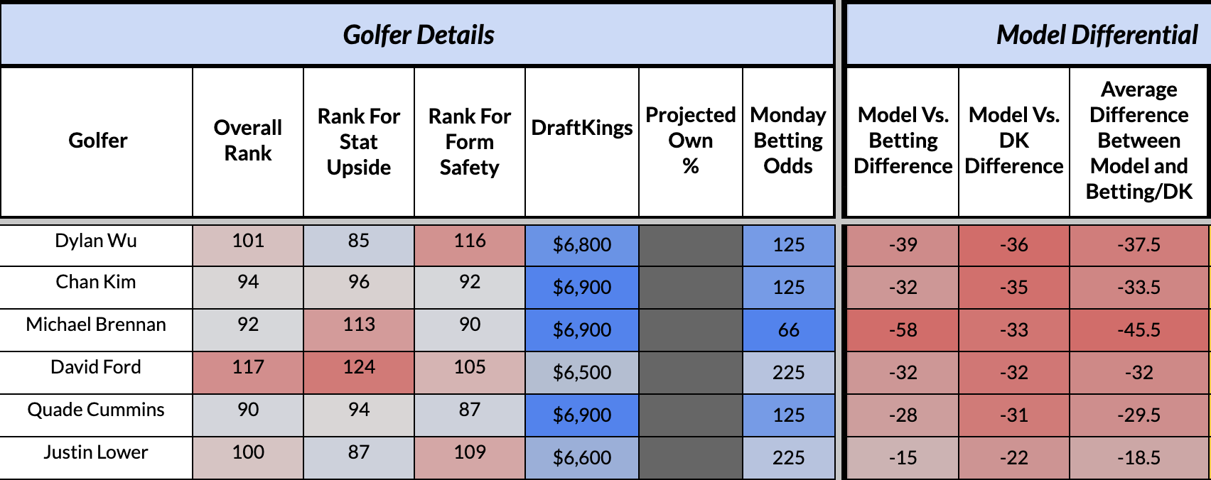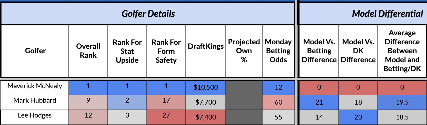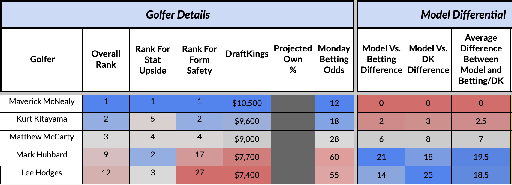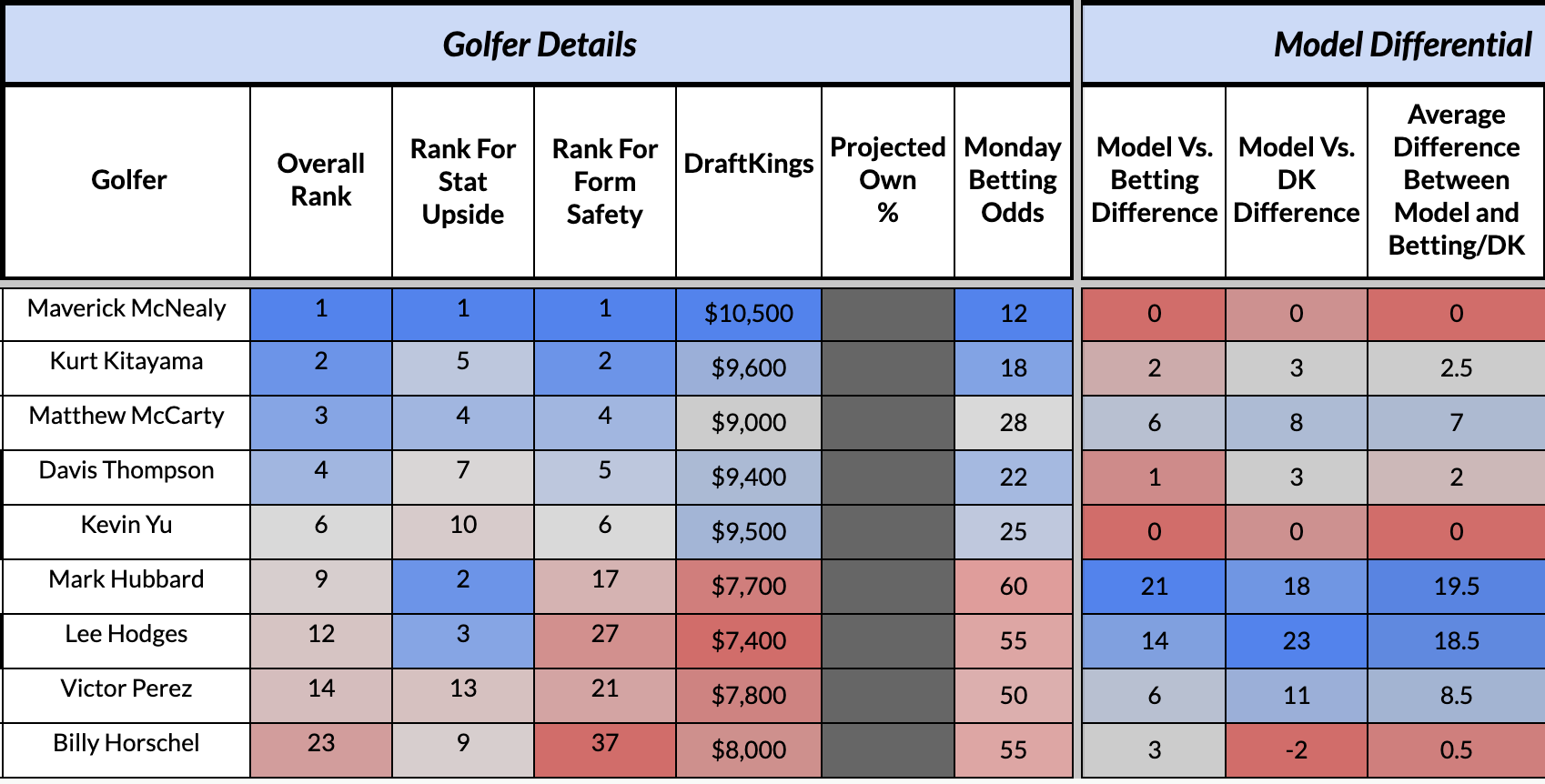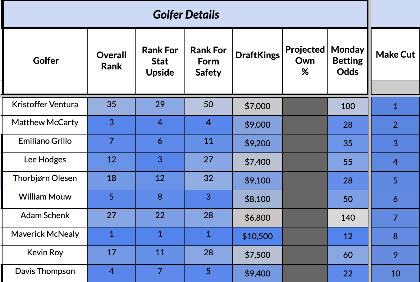 PGA DFS Rankings Wizard - Spencer's Model (And More)