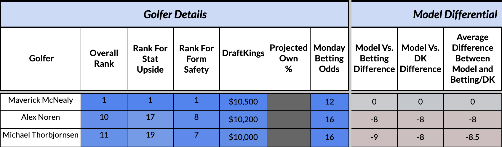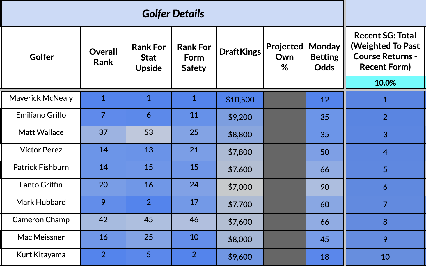 Be sure to follow me on Twitter /X @TeeOffSports to get more answers this week. Also, if you aren't doing so already, I'd love for you to consider signing up for my RotoBaller premium subscription. There are numerous tools available, including my heralded 'PGA Rankings Wizard Model.'