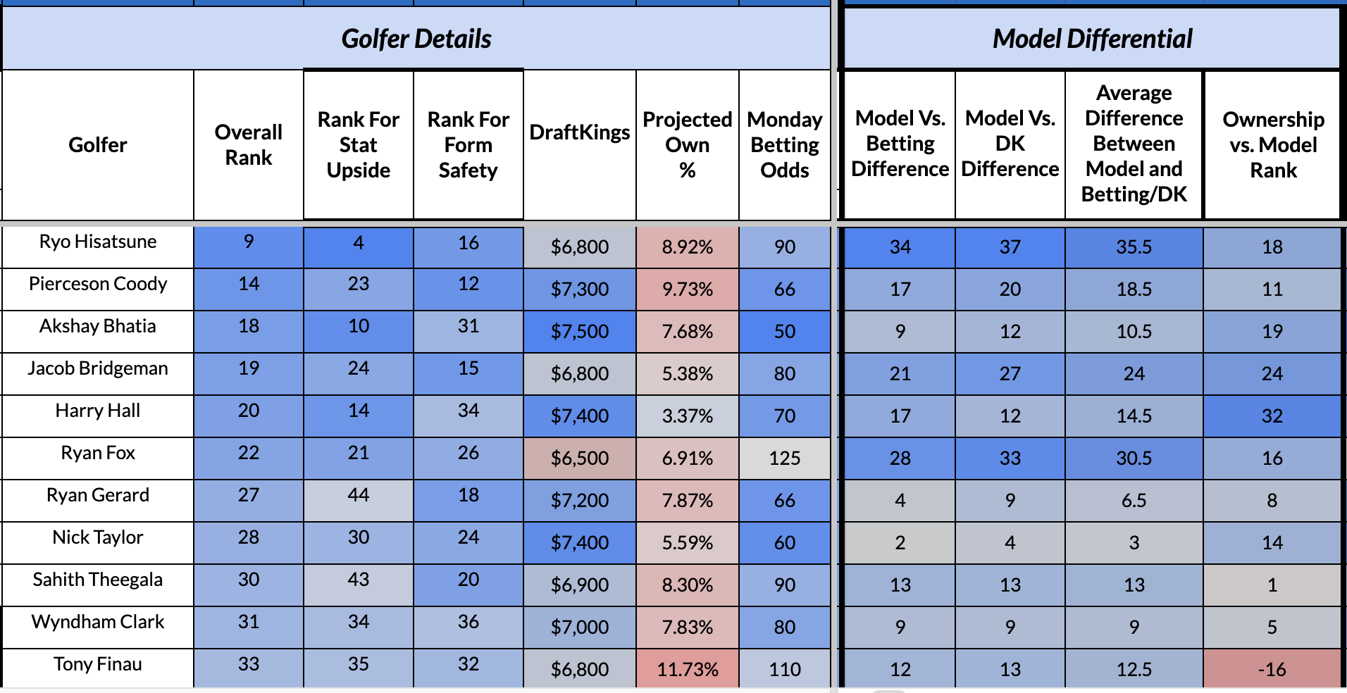 PGA DFS Rankings Wizard - Spencer's Model (And More)