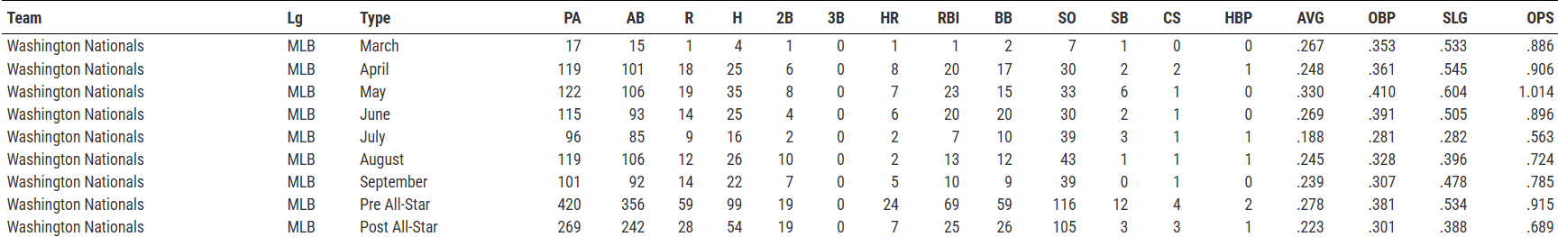 But the players featured here are the type of bigger risks you might be taking in the earlier rounds or with a healthy percentage of an auction budget. The numerical bottom may be more likely to fall out on the hitters covered in this article. At the very least, I don’t feel comfortable drafting them at their current Average Draft Positions or auction prices.