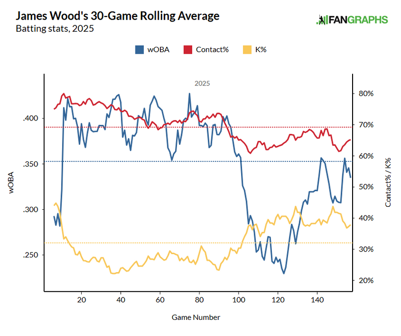 In the first half of the 2025 season, James Wood was a force to be reckoned with. But in the second half, the Wood started to rot if you catch my drift.