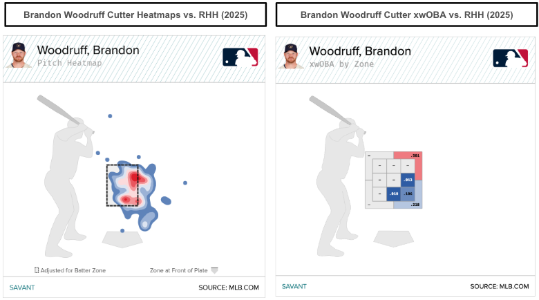 Like Woodruff's changeup, he seemingly located the cutter well against right-handed hitters, leading to weak contact (.126 wOBA, .118 xwOBA). Thankfully, Woodruff has multiple pitches to attack both sides of the plate, which should potentially help sustain his success into 2026, assuming we regress his velocity and strikeout skills to his career averages.