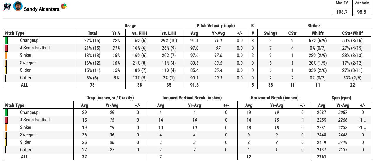 The visual below shows Alcantara's player breakdown of his first start on March 27.