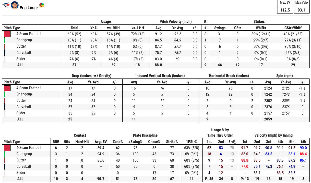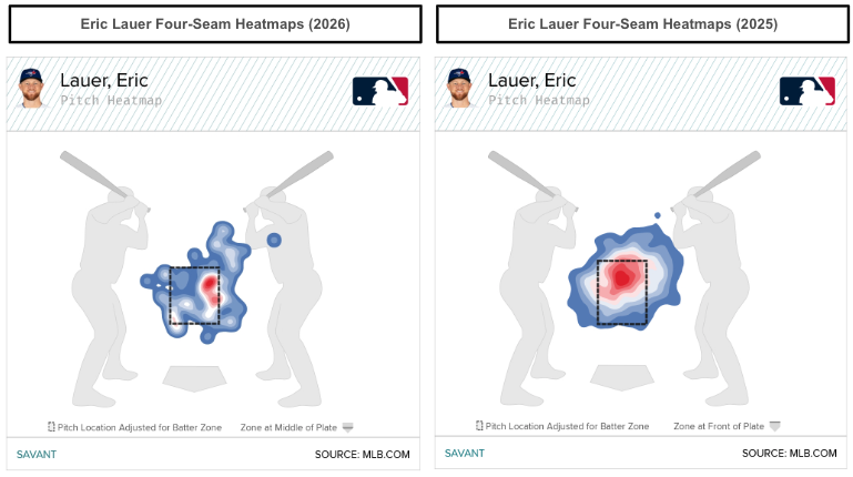 The visual below shows how precise Lauer can locate his four-seam, especially in his first outing in 2026.