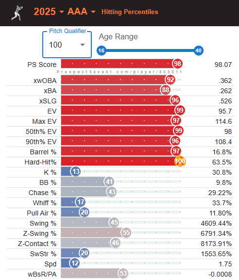 Bryce Eldridge is one of the most exciting young prospects in baseball, largely because of his light tower power. Unfortunately, like many developing sluggers, he strikes out way too much. In Triple-A last season with the Sacramento River Cats, Eldridge showcased that power by hitting a ball 114.6 mph on his way to a 25-home run season. Here’s a Statcast breakdown of his 2025 performance as a River Cat.