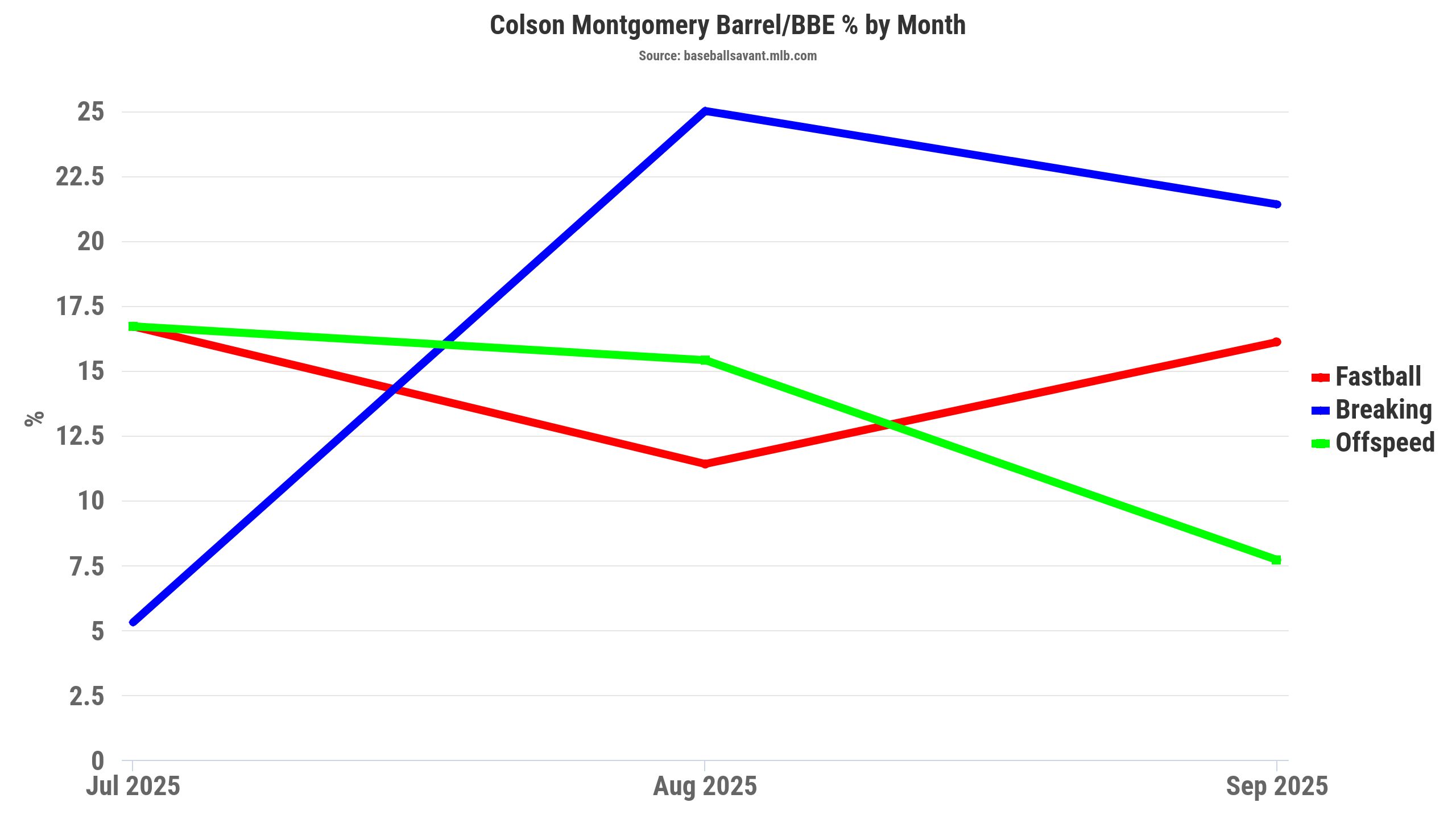 Montgomery does not profile as a shortstop who will help you with batting average and steals. But what he can do is hit for power. Check out Montgomery's barrel percentages in a 284 plate appearance sample. The 23-year-old slugged 21 home runs.