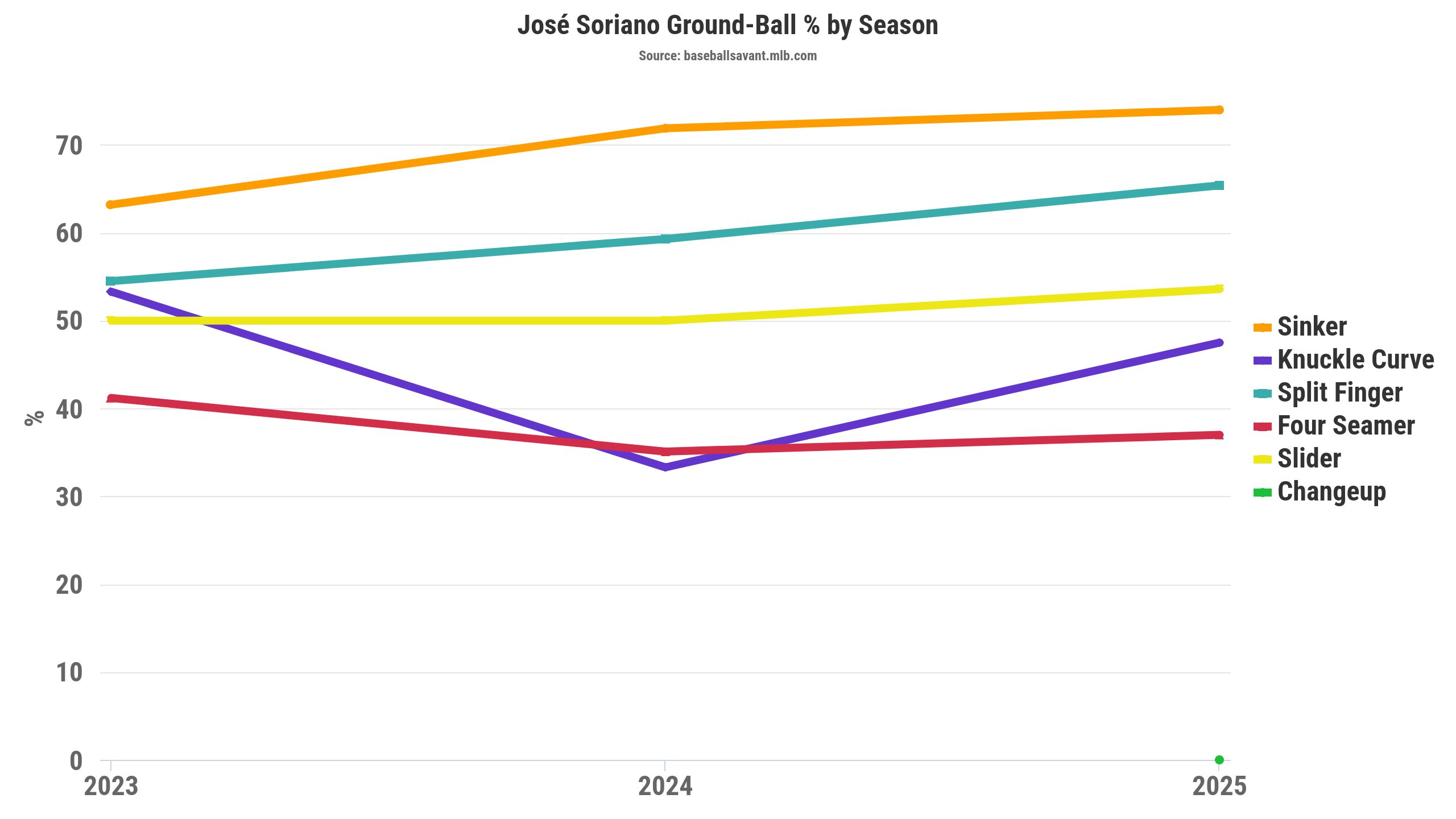 It feels like Soriano is overlooked in many leagues. My best guess is that he toils in relative obscurity and that people are wary of his strikeout rate. Yet he has the highest ground-ball rate in MLB, literally in the 100th percentile (66% GB%).