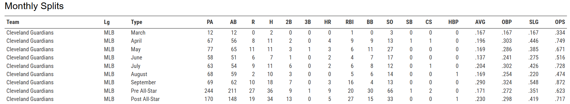 But the biggest measure of hope for Naylor is that he adjusted in the second half, leading to better contact rates. Look at his second-half splits below, where he hit .230 with five home runs and 27 RBI, cutting his strikeout rate from 31% on the first half to a more palatable 22% in the second half.