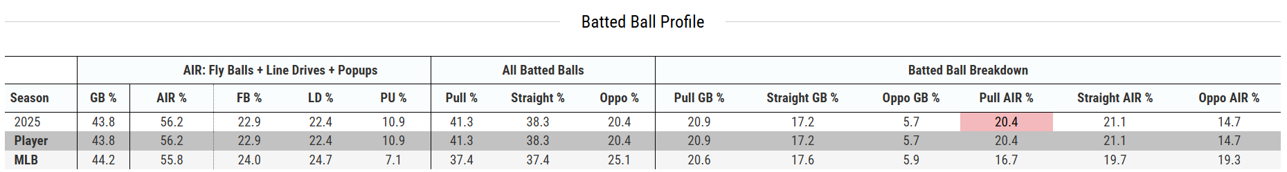 Look at the box below and note the pull air percentage. Could his swing be better suited for Fenway Park than American Family Park? Envision him hitting doubles off the Green Monster in left field with his pull-heavy approach.