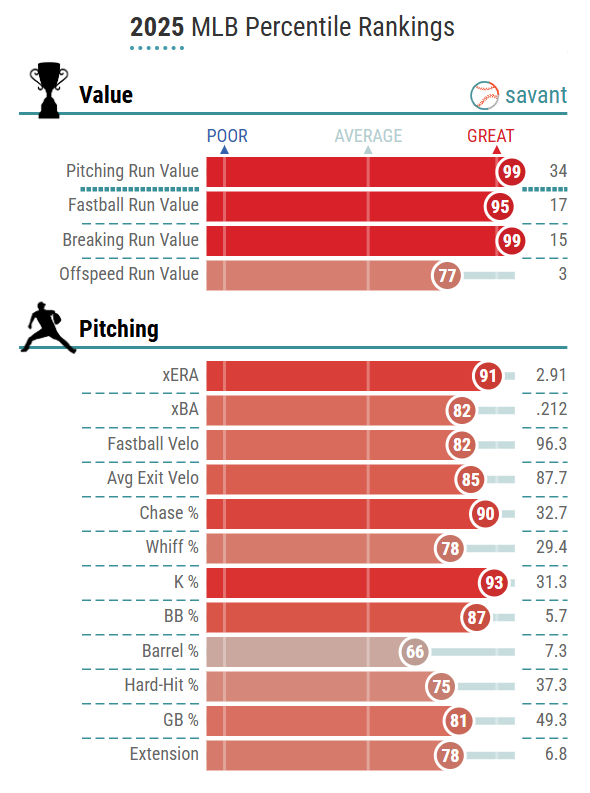2025 Stats: 32 GS, 187 2/3 IP, 10-10 W-L, 1.97 ERA, 0.95 WHIP, 216 K