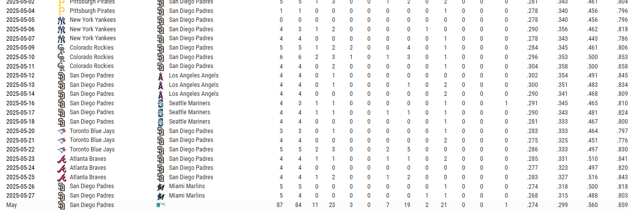Add in that he has third base and outfield eligibility, and that he will soon have first base eligibility as well, and you have a useful player in most formats. I love that he is proving all the naysayers wrong by playing well in this extended opportunity. See his growth in May below.