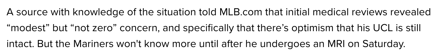 Finally, some good news for Seattle, as Victor Robles is trending toward a non-surgically repaired healing for his shoulder. It's healing on point with how it should be, and it looks as if he will be able to return sooner than originally anticipated. Still, given the magnitude of his injury, the team will likely take things slowly, making his return before the All-Star break inconceivable.