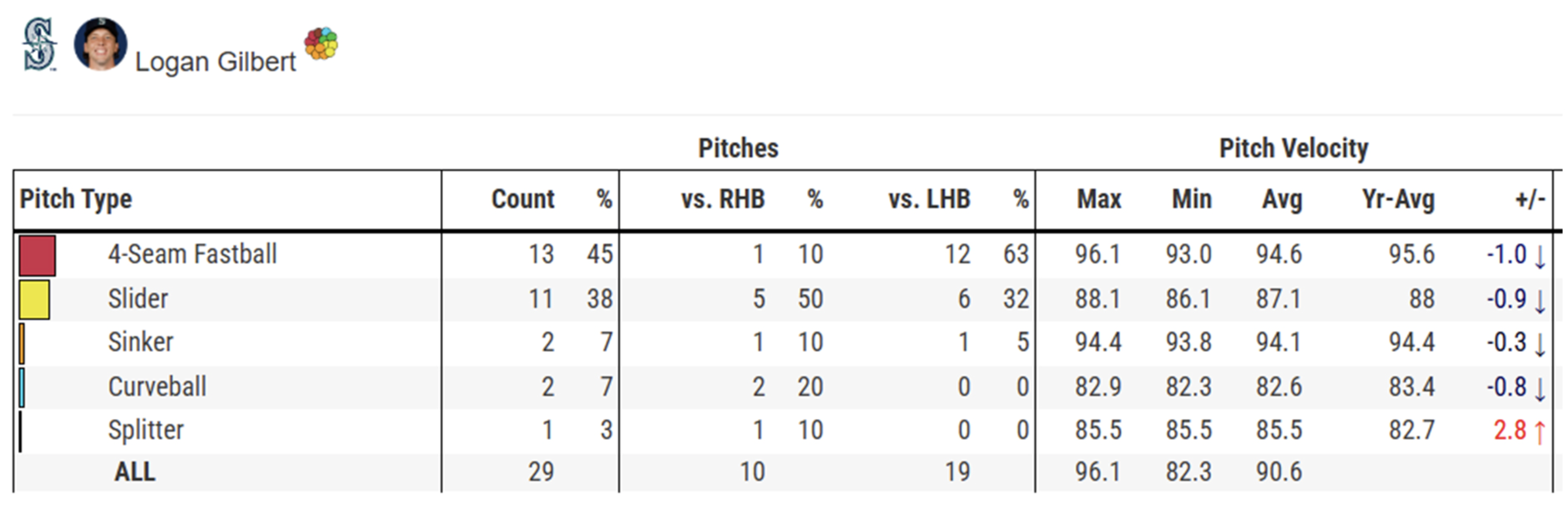 This was a disheartening way to begin the weekend, as Mariners ace Logan Gilbert was removed after three innings on Friday night with right forearm soreness. Looking at this velocity, it was down across the board, albeit slightly diminished from its usual speeds.