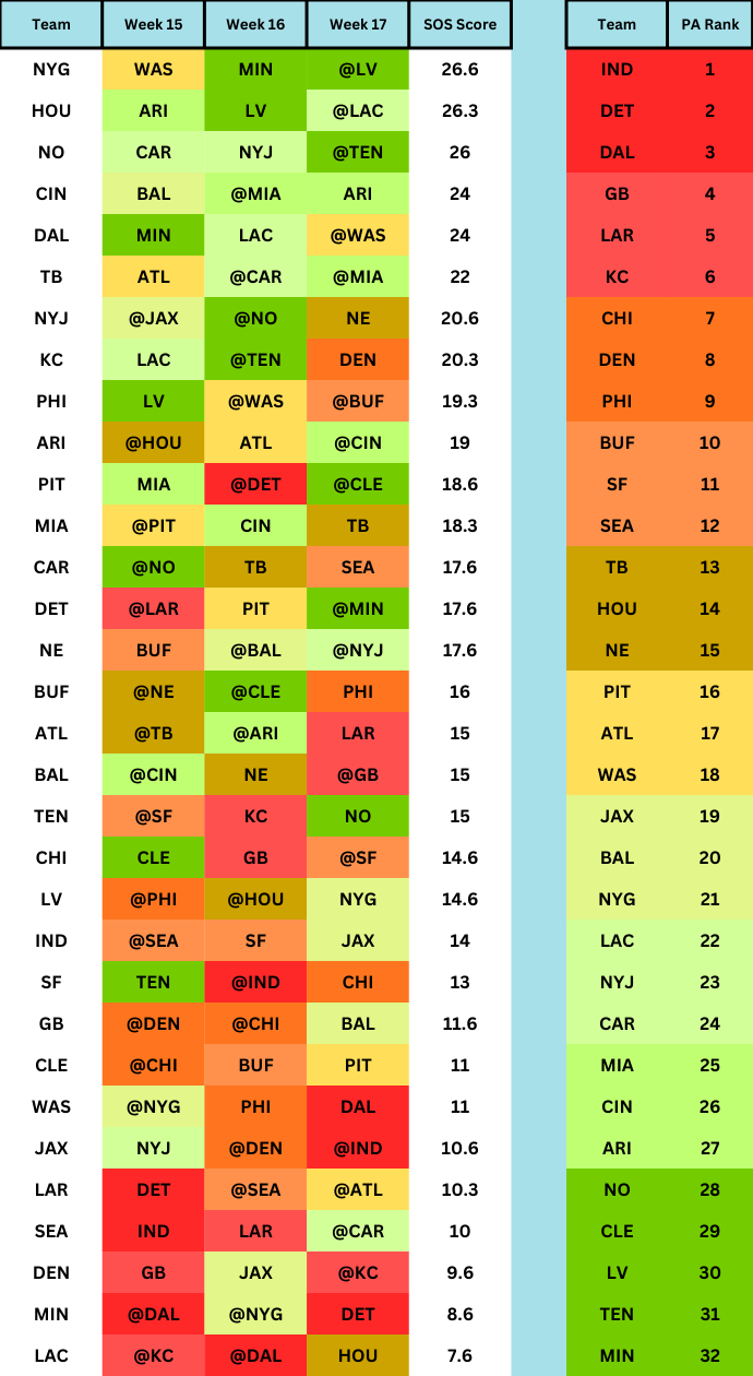 D/ST Fantasy Playoffs Strength of Schedule (Weeks 15-17)