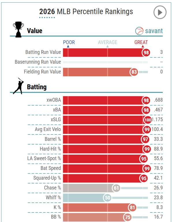 Baty has both second and third base eligibility. Baty should get regular at-bats, and he knocked in three runs on Opening Day, hitting sixth. He should get an extended runway in New York this season, and results could follow with that opportunity.