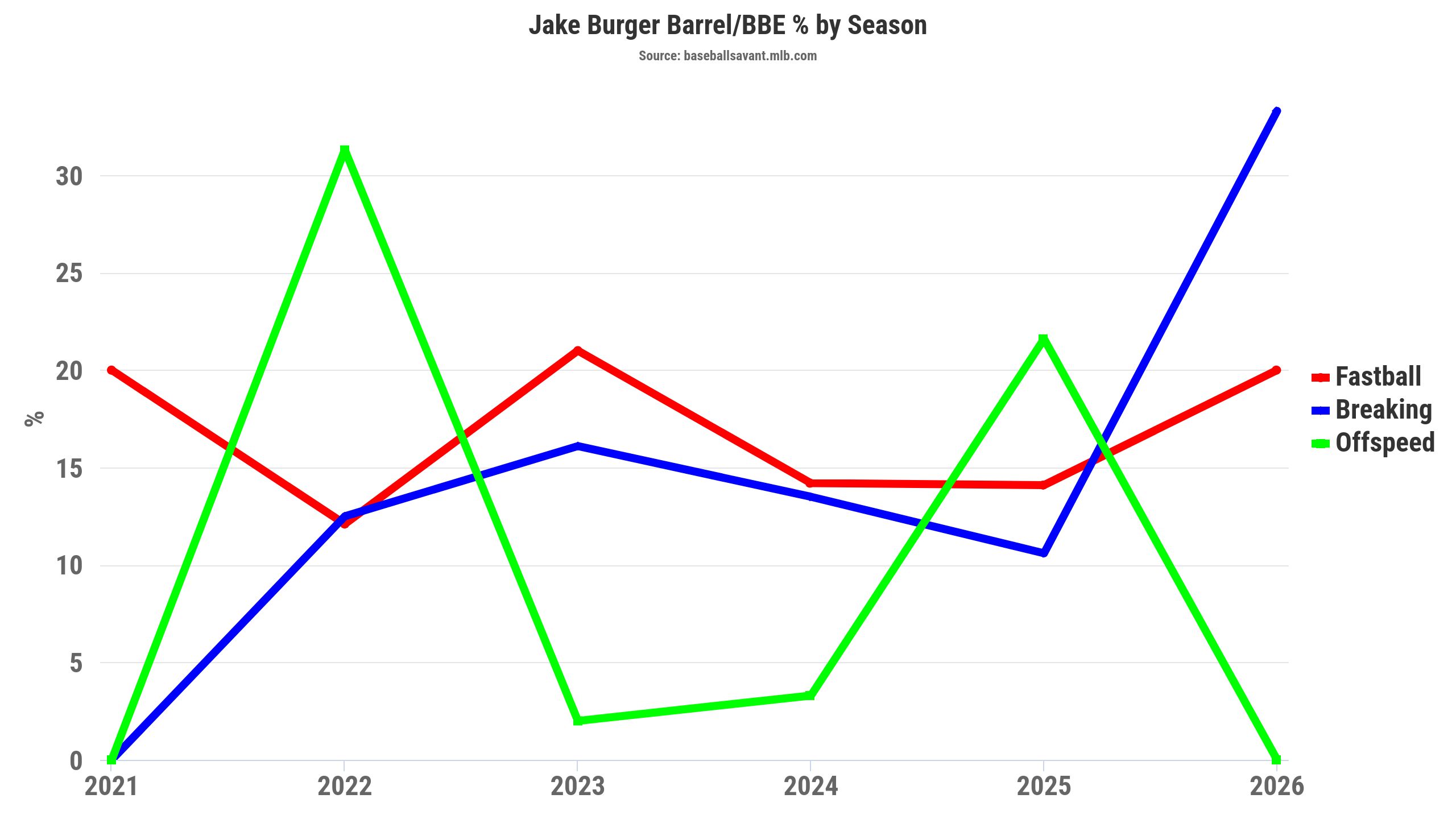I love Burger. The guy can mash, as long as he stays healthy and is in the lineup. Burger hits cleanup in what I think could be a surprising Texas lineup. Below, you can see what he does well: get the barrel of the bat on the ball. He has 30+ HR power potential.