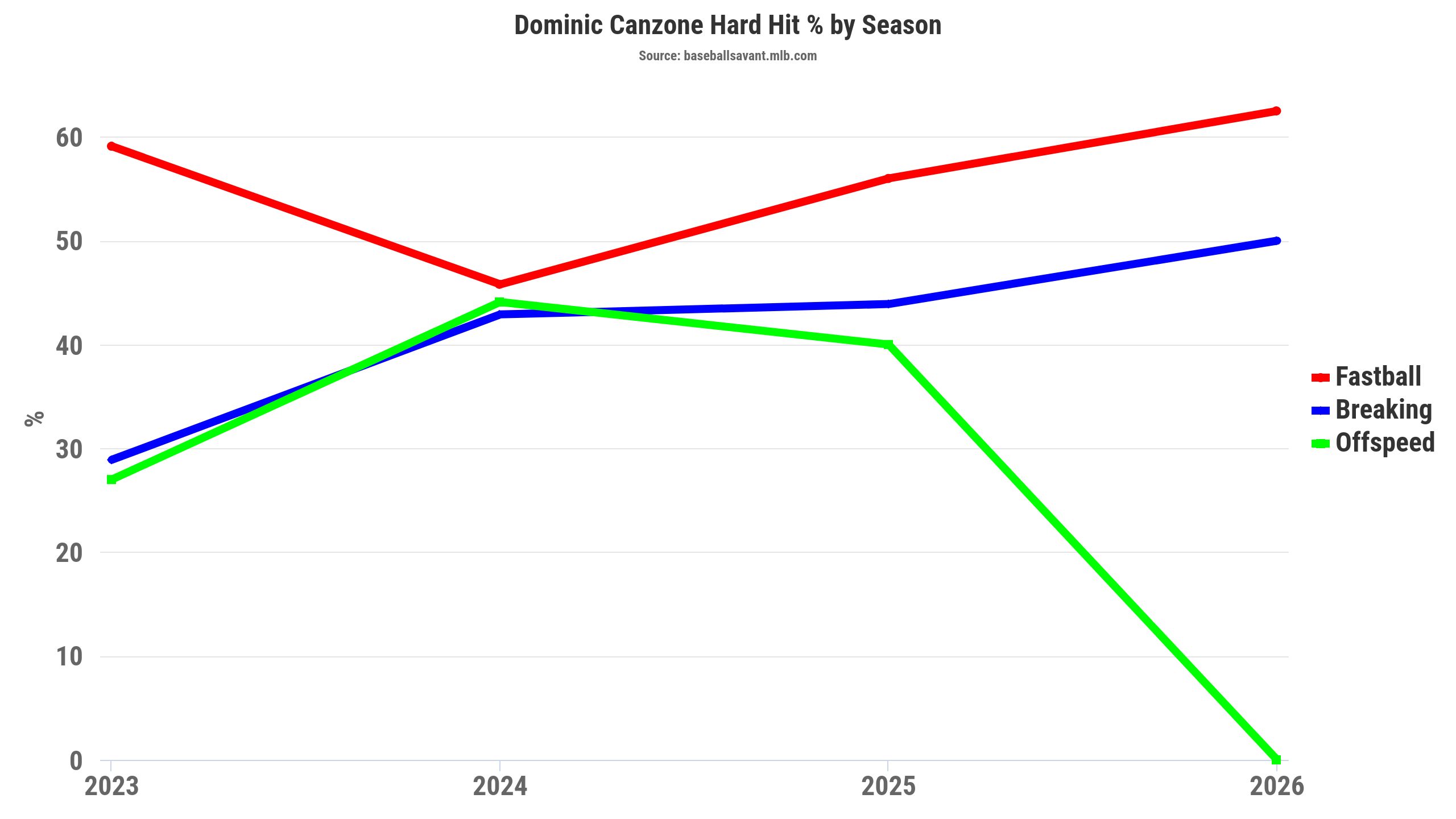 See the chart below. Granted, small sample size this season, but Canzone has always hit the ball hard in his time in Seattle. I expect an average of .250-.260 with double-digit home runs, with more at-bats than he is projected for.