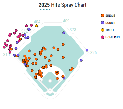 Isaac Paredes and Alex Bregman are two very similar types of hitters, at least in regard to how they produce their power. They both excel at pulling the ball in the air, with Paredes the league leader with a 38.5% pull AIR rate, and Bregman producing a 24.4% clip. Bregman is the better hitter, so he doesn’t need to rely on the gimmick as much as Paredes, but it is amazing just how good the latter is at pulling the ball directly down the third-base line, as shown in the spray chart below.
