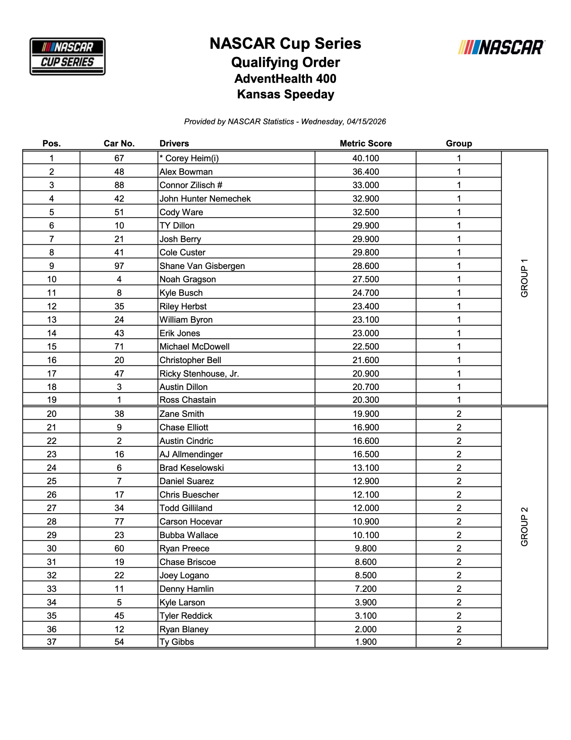NASCAR Practice Speeds, Lap Averages, and Notes for Kansas (2026)