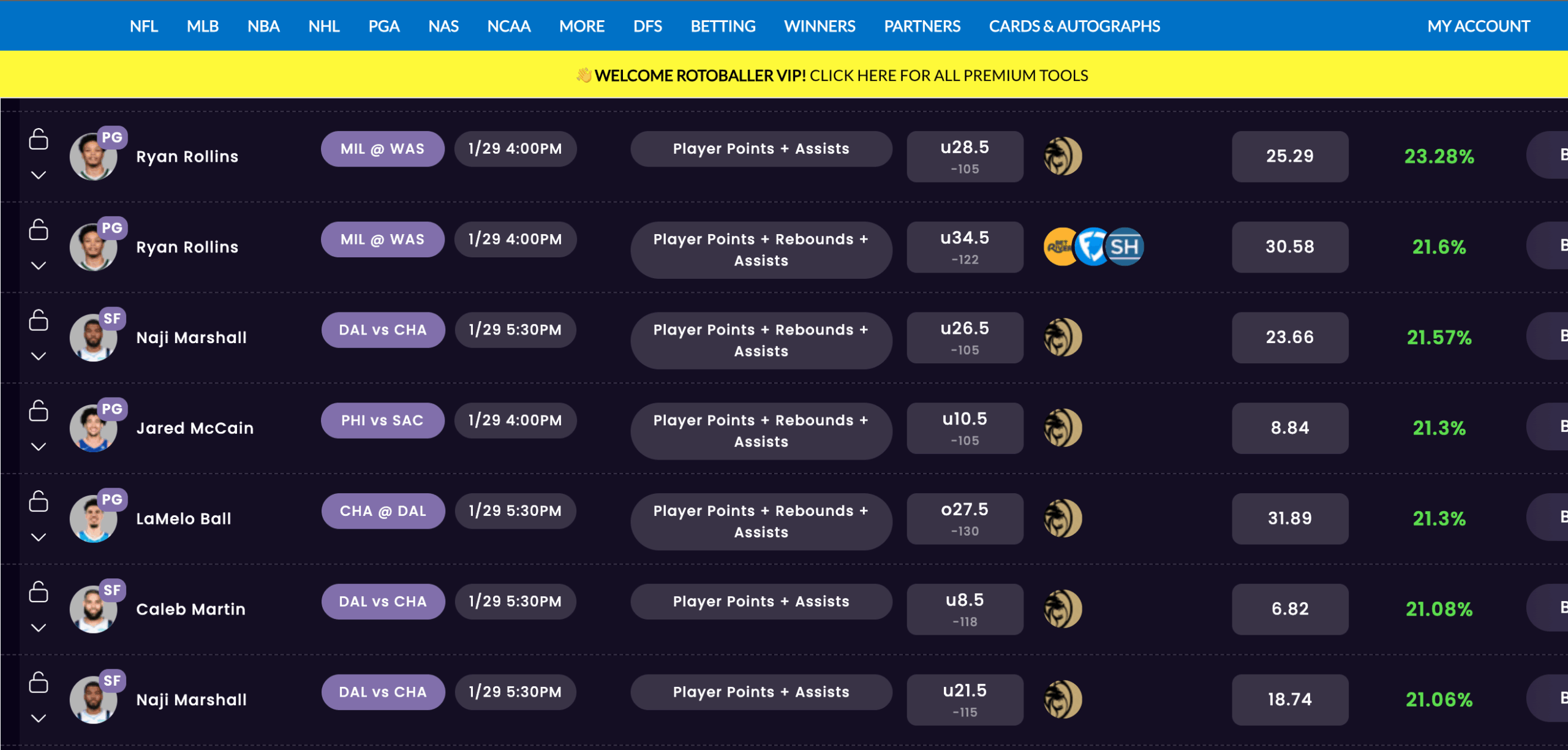 Featured Promo: New Novig users get a $25 purchase match (50% discount up to $25) on your first Novig deposit, and 6 free months of RotoBaller's "Big-4" Premium Pass (NBA, NFL, MLB, NHL) which includes exclusive tools for Betting, Props, DFS and more! CLAIM IT NOW