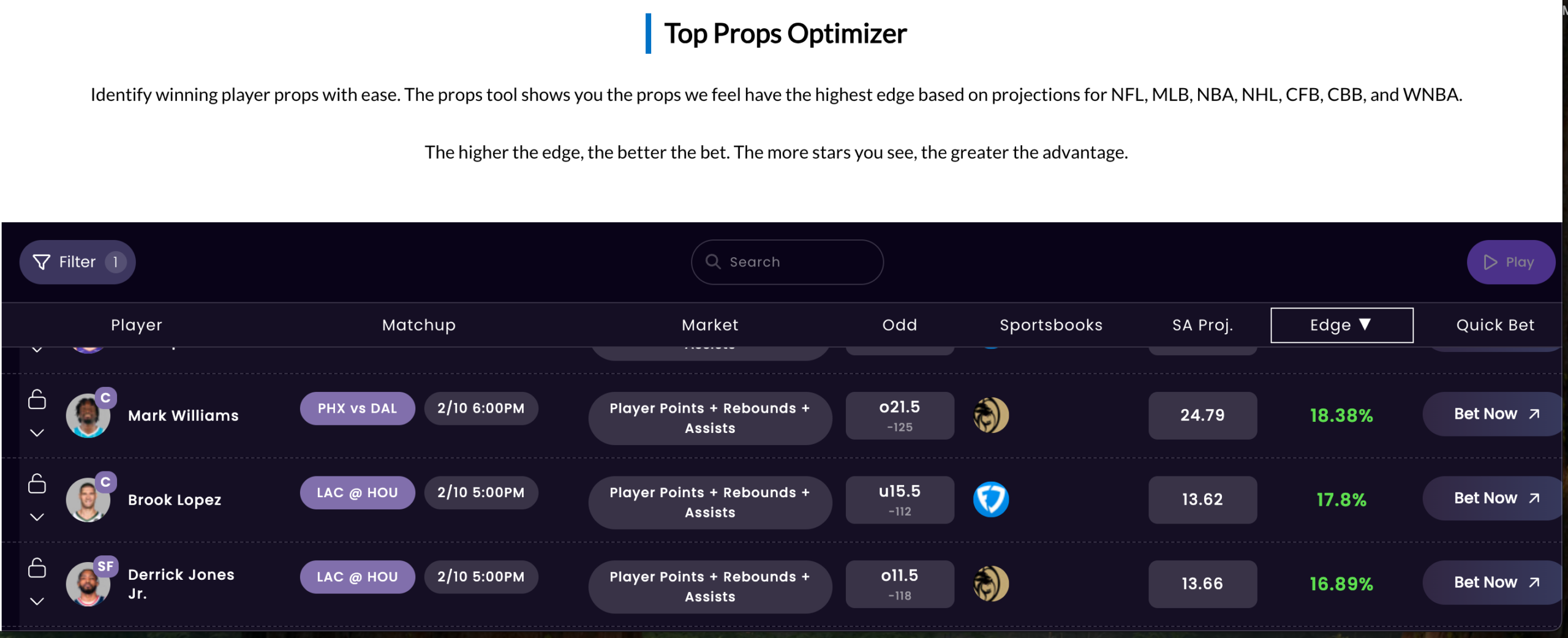 NBA Betting Props Finder Tool