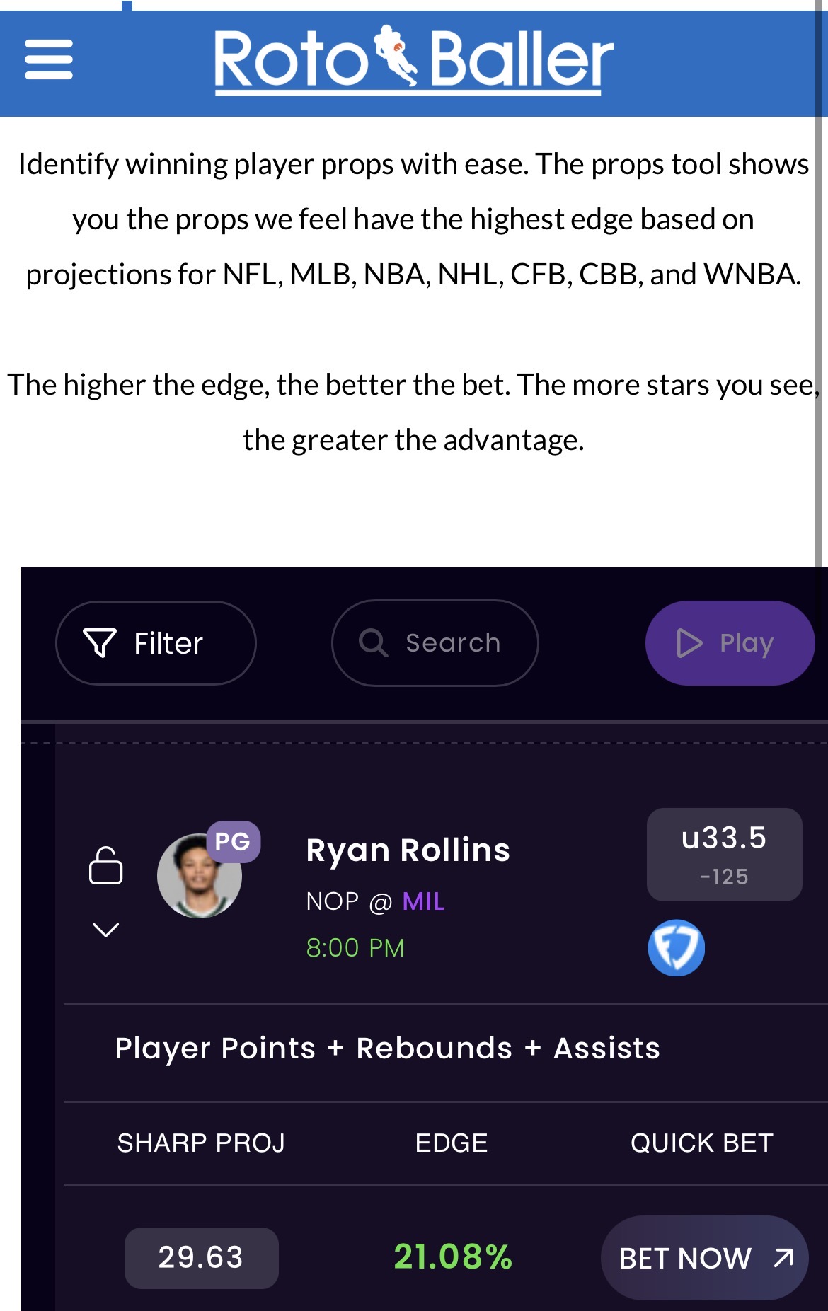 Featured Promo: New Novig users get a $25 purchase match (50% discount up to $25) on your first Novig deposit, and 6 free months of RotoBaller's "Big-4" Premium Pass (NBA, NFL, MLB, NHL) which includes exclusive tools for Betting, Props, DFS and more! CLAIM IT NOW