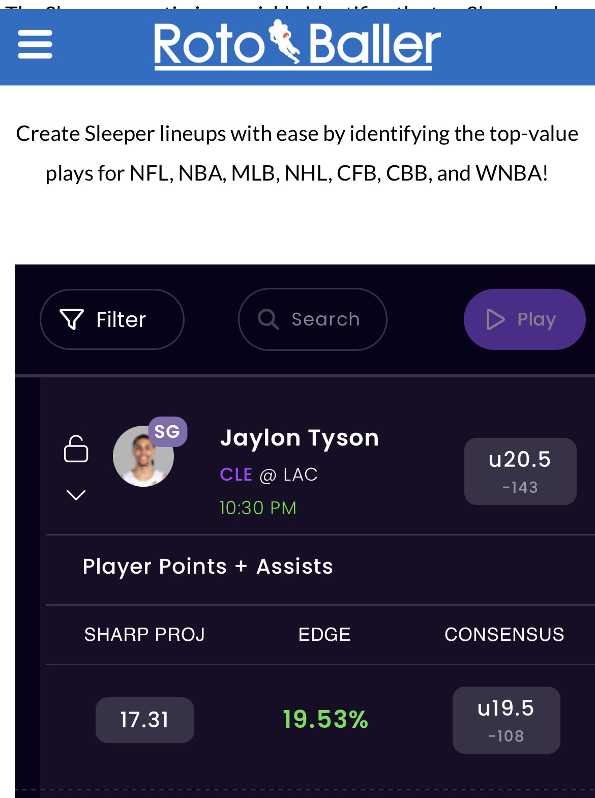 Thanks for reading, RotoBallers, and good luck if you are tailing our bets tonight!