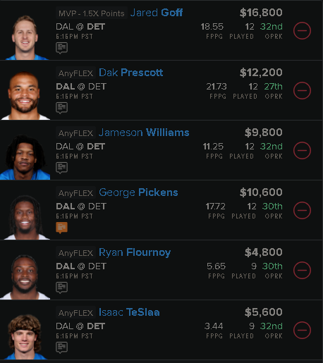 Sample NFL DFS Lineup