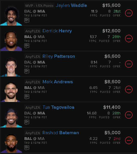 Jaylen Waddle - WR, $10.4K (DK), $10.4K (FD)