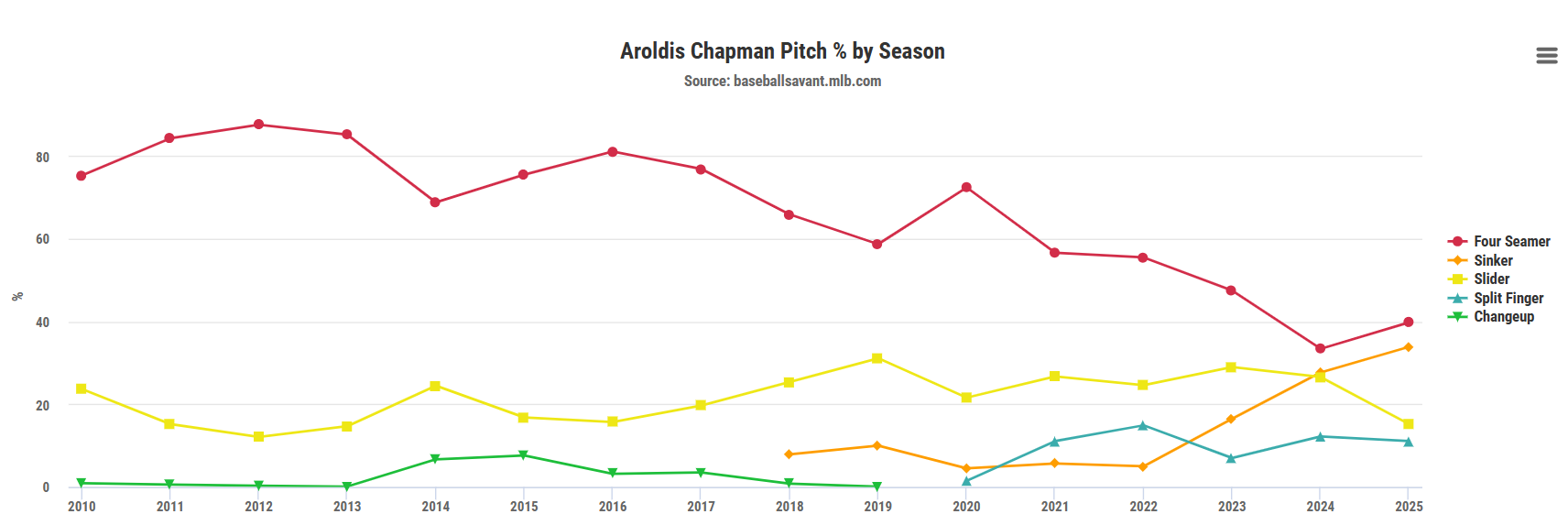 During this three-year stretch, Chapman held an overall 15.5% walk rate, which placed him among the league's worst pitchers. While the Red Sox may have helped him turn the corner from a control standpoint, managers should not expect his command to remain this elite in 2026.