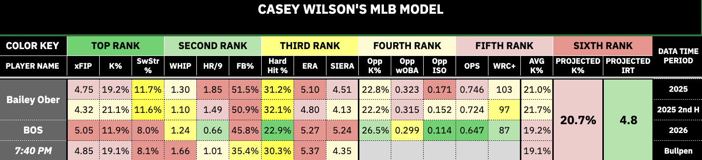 Boston Red Sox (Model Projected IRT (Implied Run Total)- 4.8) vs. Bailey Ober