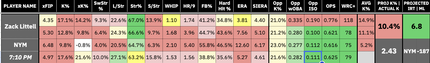 My model projects the Mets to have a 6.8 implied run total even with the current form. That should speak volumes about how bad Littell has been.